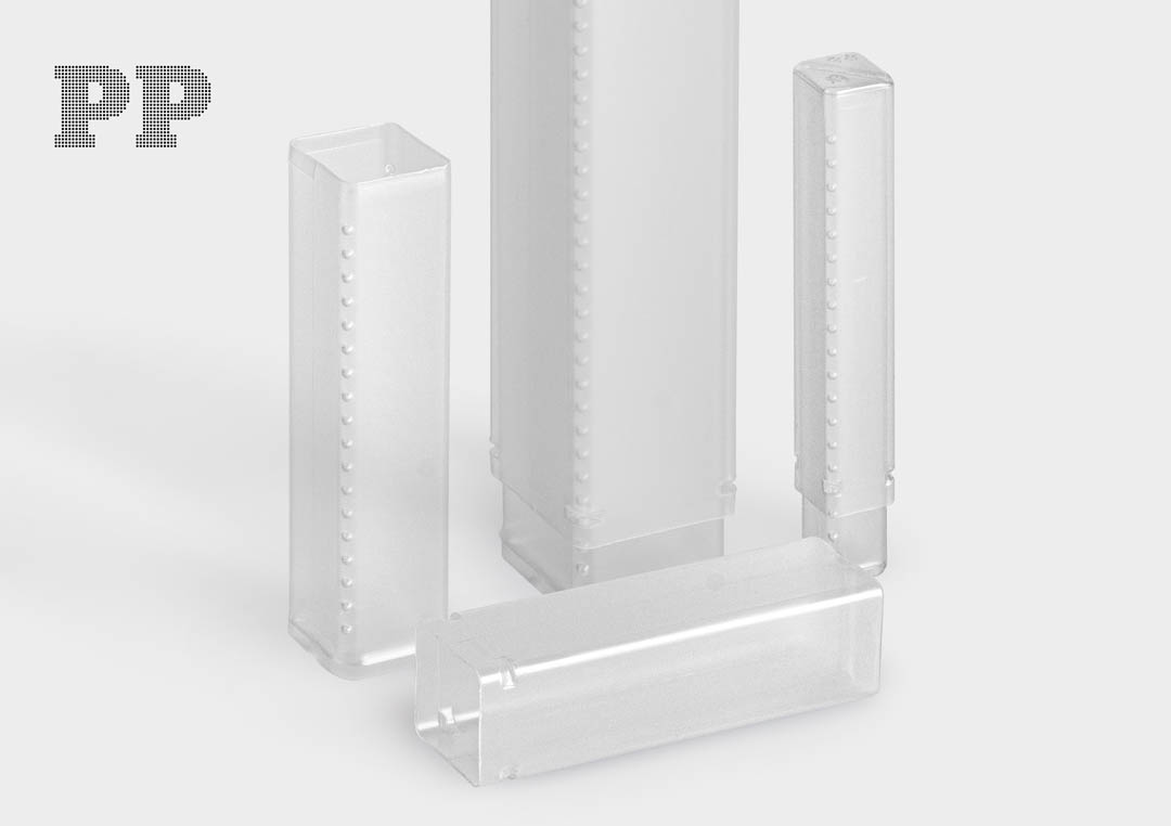 - PP transparent, PE natur, PVC klar oder in diversen attraktiven Standardfarben